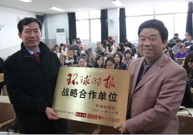 《环球时报》是由人民日报主办的一份时事新闻媒体,创刊于1993年1月3日,如今在世界90个国家和地区驻有350多位特派、特约记者,单期发行量超过200万份,“报道多元世界,解读复杂中国”是他们的办报宗旨。《环球时报》是当今社会极具影响力的媒体之一,同时也是关心中国传媒人才培养并积极进行战略合作的媒体之一。为了能够进一步帮助国内新闻传播领域高校学生实现自我成长,《环球时报》社在2011年特别推出了“环球时报与高校战略合作”项目。经过浙江大学传媒与国际文化学院与《环球时报》社双方的积极互动与协商,最终形成了该项目的战略合作伙伴关系。