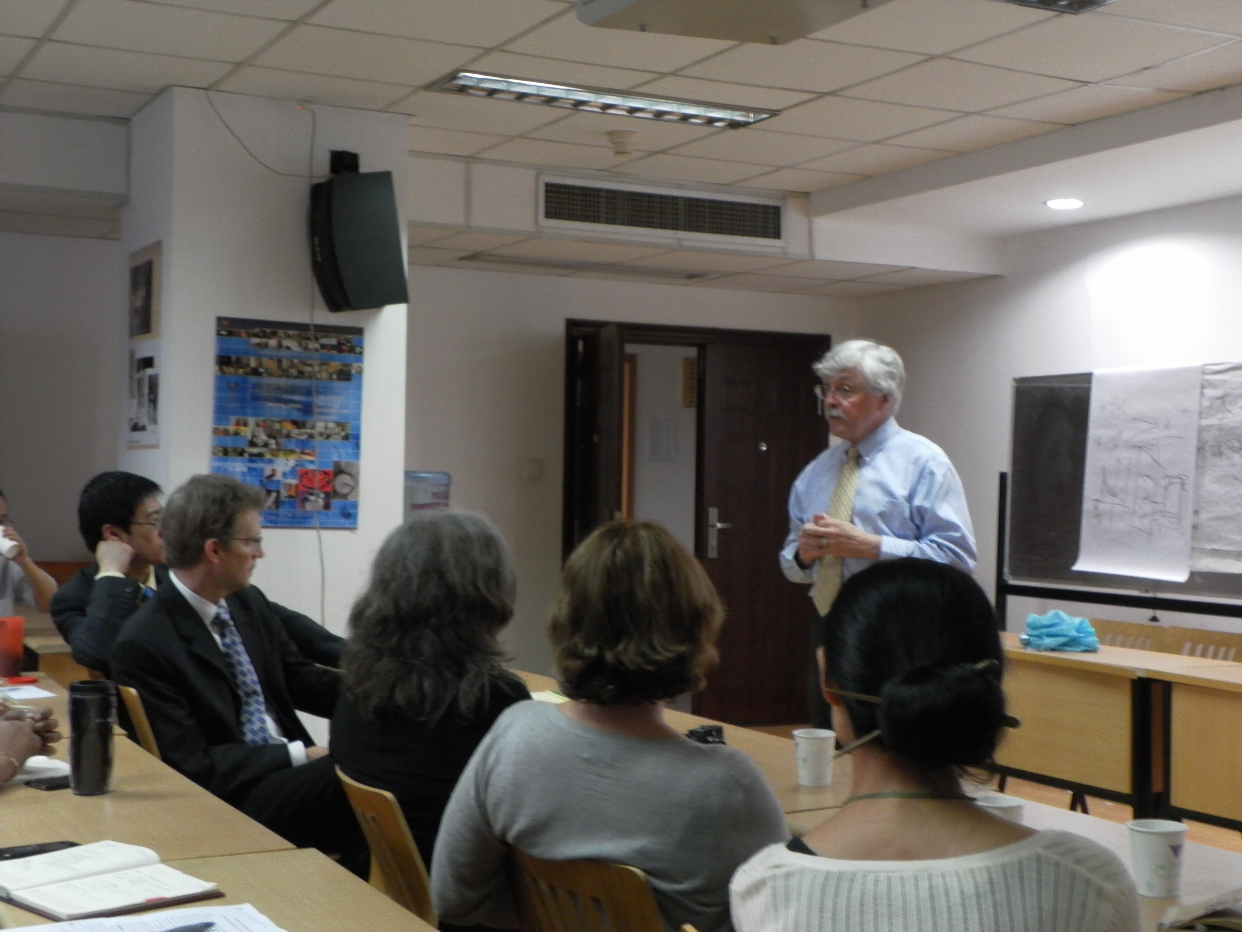 在讲座中,艾勒教授指出,visual illustration(feature)与visual reportage(fact)不同,新闻摄影要通过observe,capture和anticipate等方式在这二者之间找到平衡。艾勒教授还向师生们展示了一些虚假的图片报道的产出过程,用以说明视觉报道中accuracy的重要性。最后,艾勒教授与师生们分享了他对实现视觉报道准确性的切身体会,并用”The more you know, the more you see.”来与大家共勉。在互动过程中,同学们还饶有兴致地向艾勒教授了解了一些关于俄亥俄大学相关专业设置的信息和校园情况,艾勒教授非常欢迎同学们到俄亥俄大学继续深造。讲座在融洽的氛围中结束。