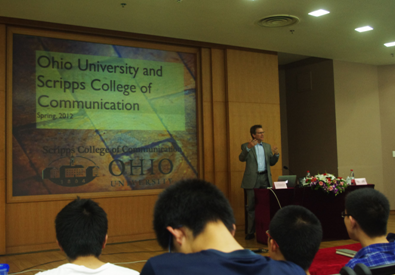 讲座伊始,主讲人Eric W. Rothenbuhler教授简单地为我们介绍了俄亥俄州立大学的历史,并向我们展示了美丽的俄亥俄州立大学的风光照片。