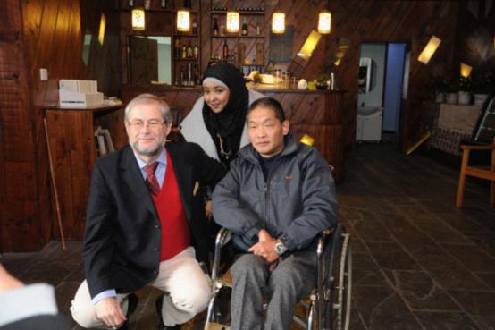 Peter先生(前左)与杭州市无障碍建设环境促进会会长张华(前右)及会议翻译和丹(后)