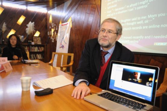 下午的议程主要是来访嘉宾的主题演讲。分别是:Peter Olaf Looms先生的《媒体无障碍——让世界大不同》,主要谈论了媒体无障碍的理念、包含的范畴、实践的途径、运营的方式、监督及长效机制等,他运用了大量的案例,把欧洲一些国家的成功经验进行了介绍。他说:实际上媒体无障碍建设并没有想象的那么难,也没有所谓了那么“耗财”,之所以这项工作这么难以推进,主要的困难仍在于人们的意识,要让更多的人意识到这是一件必须的工作,是应该做的事情,只有大家达成共识了,无障碍建设才能顺利推进。之后,来自北京大学的林慧苹老师做了题为《老年人的情景感知服务研究》,林慧苹老师向与会者介绍了一种情景感知技术,这一技术可以为肢残者或行动不便的老人提供无障碍的生活辅助。浙江传媒学院的潘祥辉老师给大家讲述了“无障碍电影的发展现状及未来展望”,并给大家带来了一部二十分钟的无障碍电影《辛亥革命》,让许多与会者第一次见识了无障碍电影的真面目。浙江工商大学的郑琪同学代表李东晓老师的无障碍传播研究团队做了有关“中国电视无障碍发展状况的报告”。此报告对我国收视前十位的卫星电视的字幕配备情况做了细致的统计,并对我国当前的电视手语节目进行了统计分析后提出:我国当前电视媒体的无障碍建设重点在于完善新闻类节目的字幕配备,加紧电视直播节目、体育类节目的字幕配备工作;提升电视手语节目的品质等。最后,来自丹麦哥本哈根信息科技大学的两位研究生Gudný Thórfrídur Magnúsdóttir及Lisbet Kvistholm Thrane分别做了题为《老年人、媒体无障碍及数字素养》和《口语字幕——扫除电视节目对非母语观众的障碍》的视频演讲,此两人从不同的受众角度(老人和他国移民者)提出了媒体无障碍建设的重要性及实现方案。演讲结束后,她们又通过Skype与会场听众进行了网络视频互动。