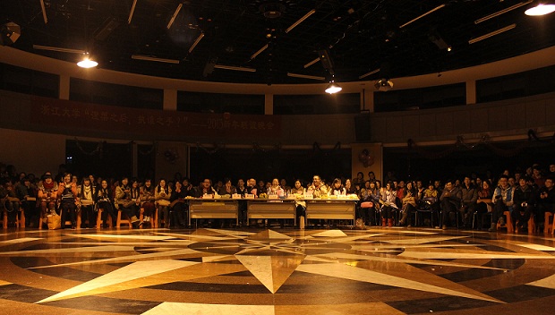 雨后隆冬的杭州城里落叶缤纷、寒气正浓,夜色中的永谦圆形剧场内华灯璀璨、暖意融融。12月24日,在玛雅古历法顺利更替和圣诞新年即将到来之际,由浙江大学校研会、电气工程学院研会主办,控制系、经济学院、生物医学工程与仪器科学学院、传媒与国际文化学院联合协办的盛大联谊晚会在玉泉校区永谦活动中心举行。