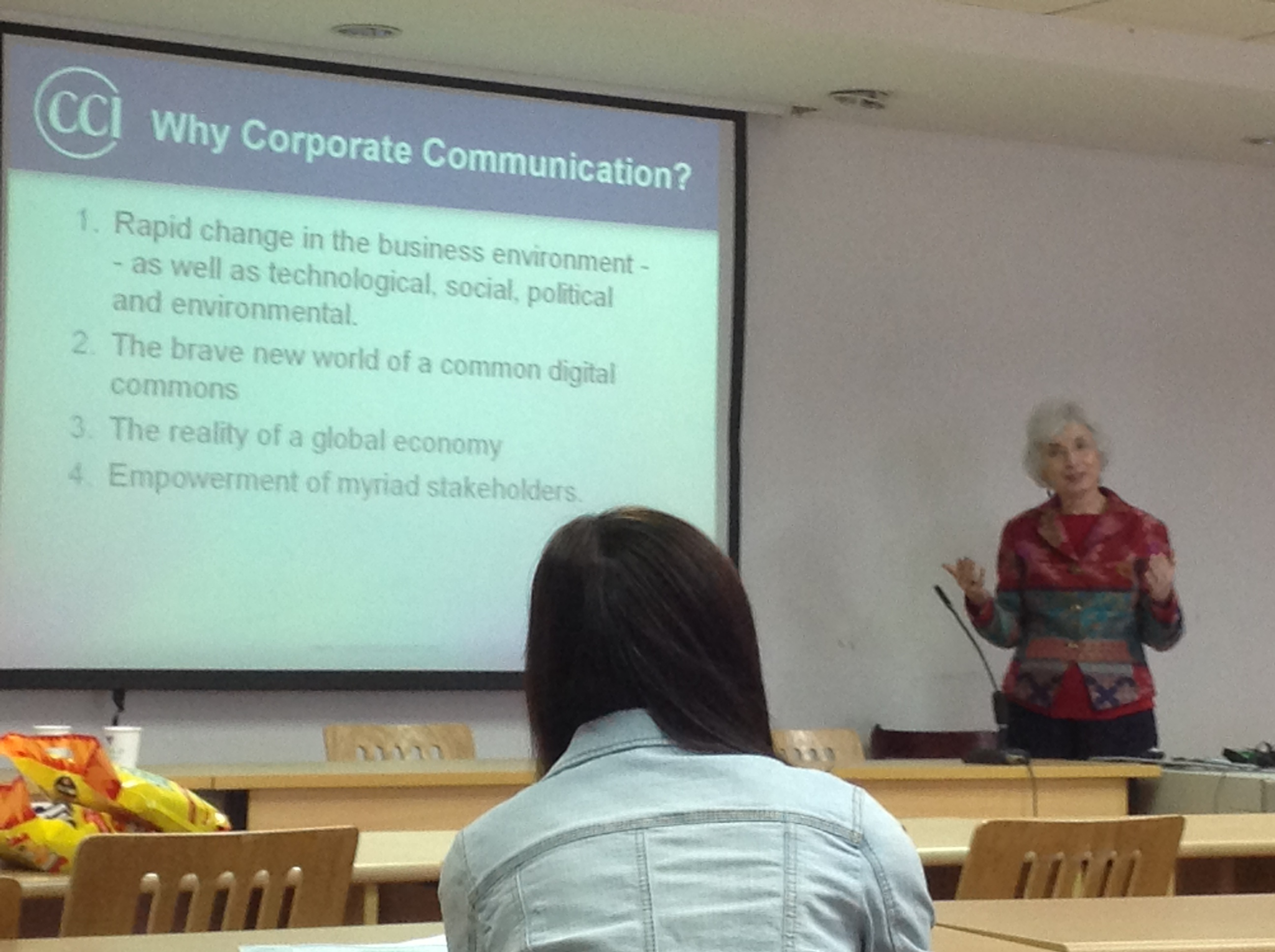 3月8日上午11:30,香港理工大学MABCC(MA in Bilingual Corporate Communication)硕士项目招生宣讲会在浙江大学西溪校区教学主楼426室举行,出席领导有浙江大学传媒与国际文化学院党委副书记黄任群,受邀参加交流会的专家有美国纽约城市大学柏鲁克学院企业传讯国际的副院长Christina Genest女士,香港理工大学中文及双语学系(Department of Chinese & Bilingual Studies, CBS)的苏咏昌教授及魏城璧博士。此次选举会吸引了数十位来着不同专业的学生的参与。