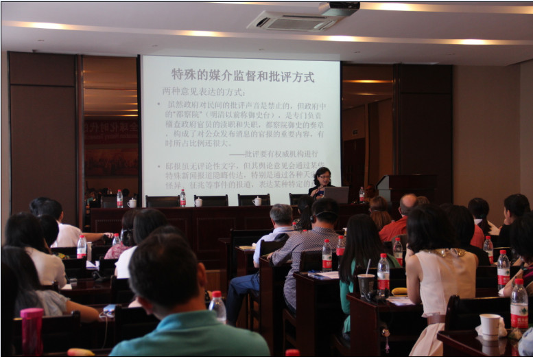 主题发言仅仅是中美学者交流讨论的一个开端,接下来会议围绕“新闻史研究的理论和方法”“中美报刊史研究”“中美媒介发展与社会变迁”和“新闻专业主义与媒体社会建构”四个主题分别进行专题研讨,展开了气氛热烈的思想交锋和观点碰撞。俄亥俄大学新闻学院教授玛莉莲·格林沃德(Marilyn Greenwald)、俄亥俄大学传播学院副教授本杰明·贝茨(Benjamin Bates)、俄亥俄大学新闻学院助理教授艾米·埃德门森(Aimee Edmondson)、俄亥俄大学传播学院助理教授陈雅文(Yea-Wen Chen)、浙江大学传媒与国际文化学院教授李岩、浙江大学传媒与国际文化学院副教授何扬鸣、浙江工业大学之江学院教授赖骞宇、中国青年政治学院新闻与传播系副教授陈彤旭、湖北大学新闻传播系副教授黄月琴、湖南工业大学新闻学院副教授阳海洪、香港恒生管理学院助理教授吴静、上海师范大学讲师易旭明、上海商学院讲师倪琳、深圳大学文化产业研究院讲师张晗、西南大学育才学院讲师陈寅、北京电台广播发展研究中心王岚岚围绕主题进行了各具特色的精彩发言。本次会议还有若干优秀学生论文入选,这些论文来自北京师范大学张侃侃、浙江大学周智、中国传媒大学童珮茹、南京师范大学汪静、陕西师范大学李琼、渤海大学王馨慧等等。