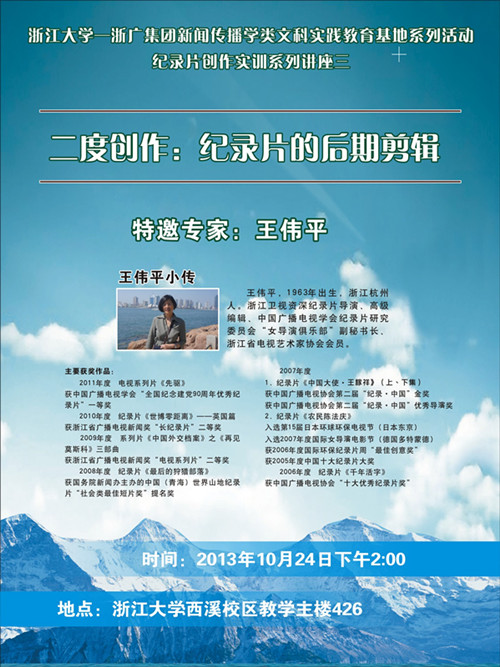 浙江大学-浙广集团新闻类文科实践基地纪录片创作实训序列讲座