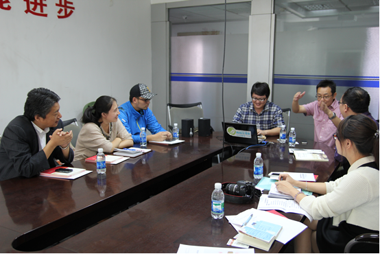 图(一):青岛掌控传媒有限公司总经理给调研人员做介绍