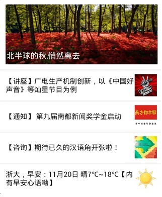 传媒星空将自身定位为生活服务类平台,致力于为广大浙大师生提供丰富多彩的生活资讯类信息。平台将会定期向大家推送就业兼职实习、图书电影音乐、旅游美食摄影、生日祝福、天气预报等信息。