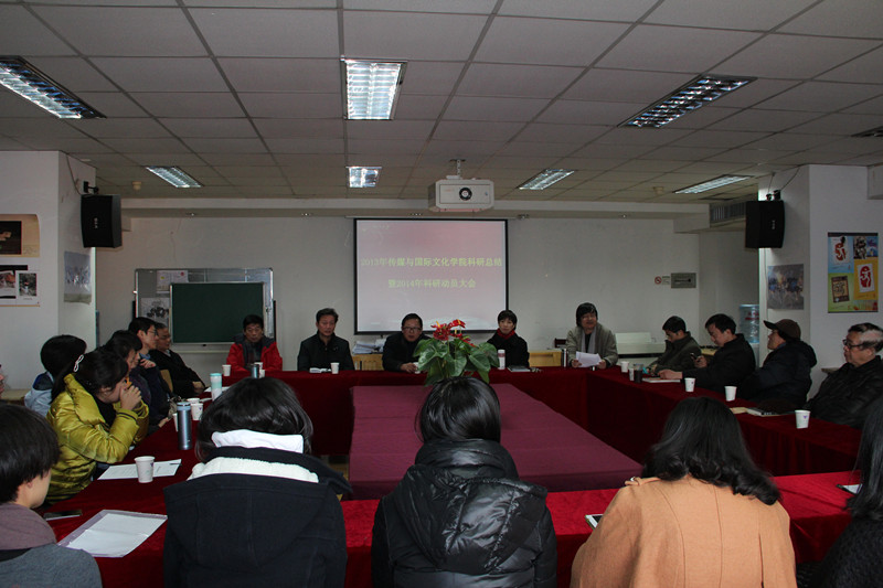 2014年1月2日中午,传媒与国际文化学院2013年度科研总结暨2014年度科研动员大会在西溪主楼426室召开。会议由副院长胡志毅教授主持,学院领导班子成员在内的43位教师出席了本次大会。