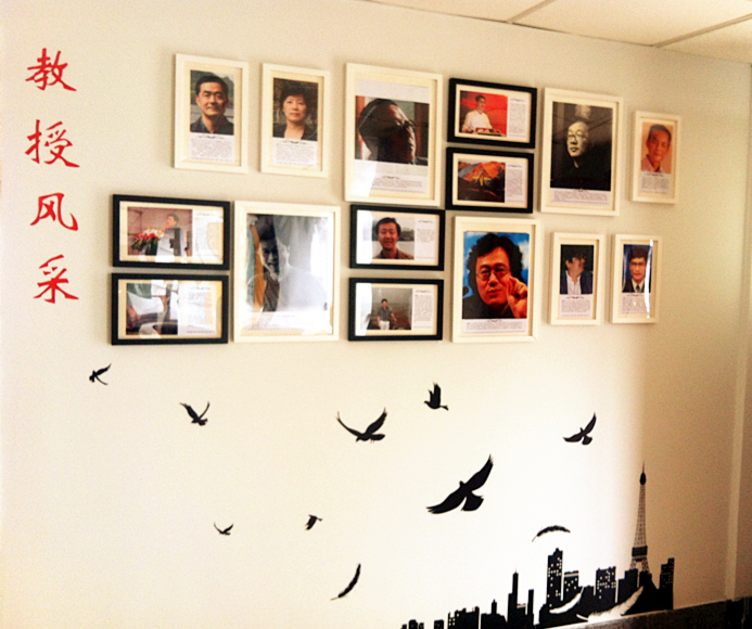 教授风采展示板块。这块区域展示了我院15位教授的风采。同学们平时上课时接触到的教授有限,对他们的了解也多仅限于课堂,而在教授展示区域,同学们则有了机会近距离“接触”教授的机会。这次的教授风采展示形式不像以往严肃端庄的证件照形象,而是较为灵活地展示了他们不同的一面。其中有的深沉,有的亲切,有的还是教授年轻时的照片,相信同学们看了一定会有耳目一新的感觉。此外,同学们还可以通过照片下方的介绍了解教授的生平、主要研究领域,当自己在相关领域有问题的时候,就可以有针对性地寻求老师解答。师生交流是教学中非常重要的一环,师生双方相互交流、相互沟通、相互启发、相互补充,从而可以达到共识、共享、共进,实现教学相长与共同发展。