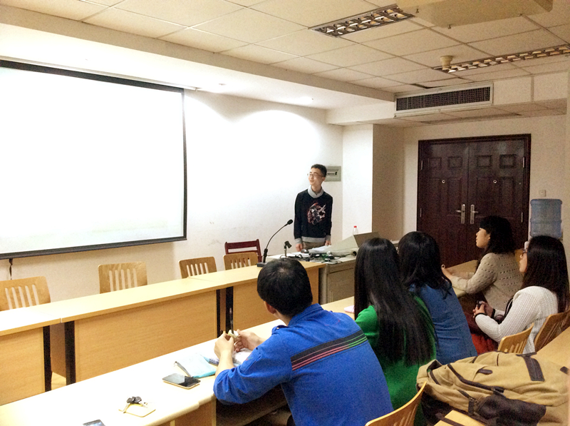 比起第一期偏重于技术性的培训,第二期课堂则更看重分享。作为一个典型的网球迷,王颖江同学已自己兴趣爱好为例,给大家普及了网球相关知识,并着重讲解了网球在跨文化传播中的作用。谈到自己所讲的题目,他认为虽然这样的题目实用性稍显逊色,但是他希望能够通过自己的讲解为大家扫盲,让大家对现在比较热门的网球运动有所了解,同时他也希望能够通过自己的分享可以激发大家的运动热情,在春夏之交多多接触户外活动,锻炼身体。