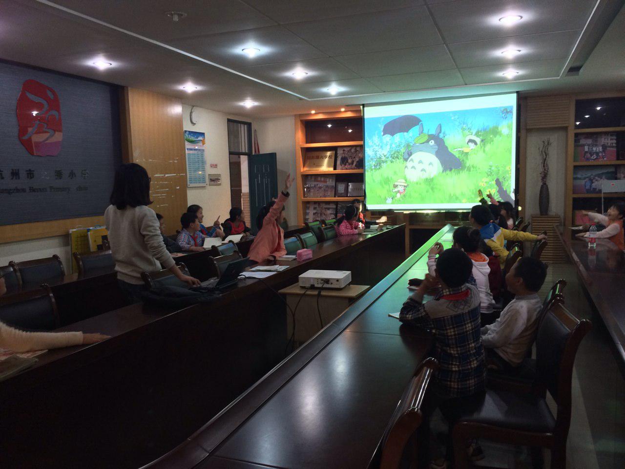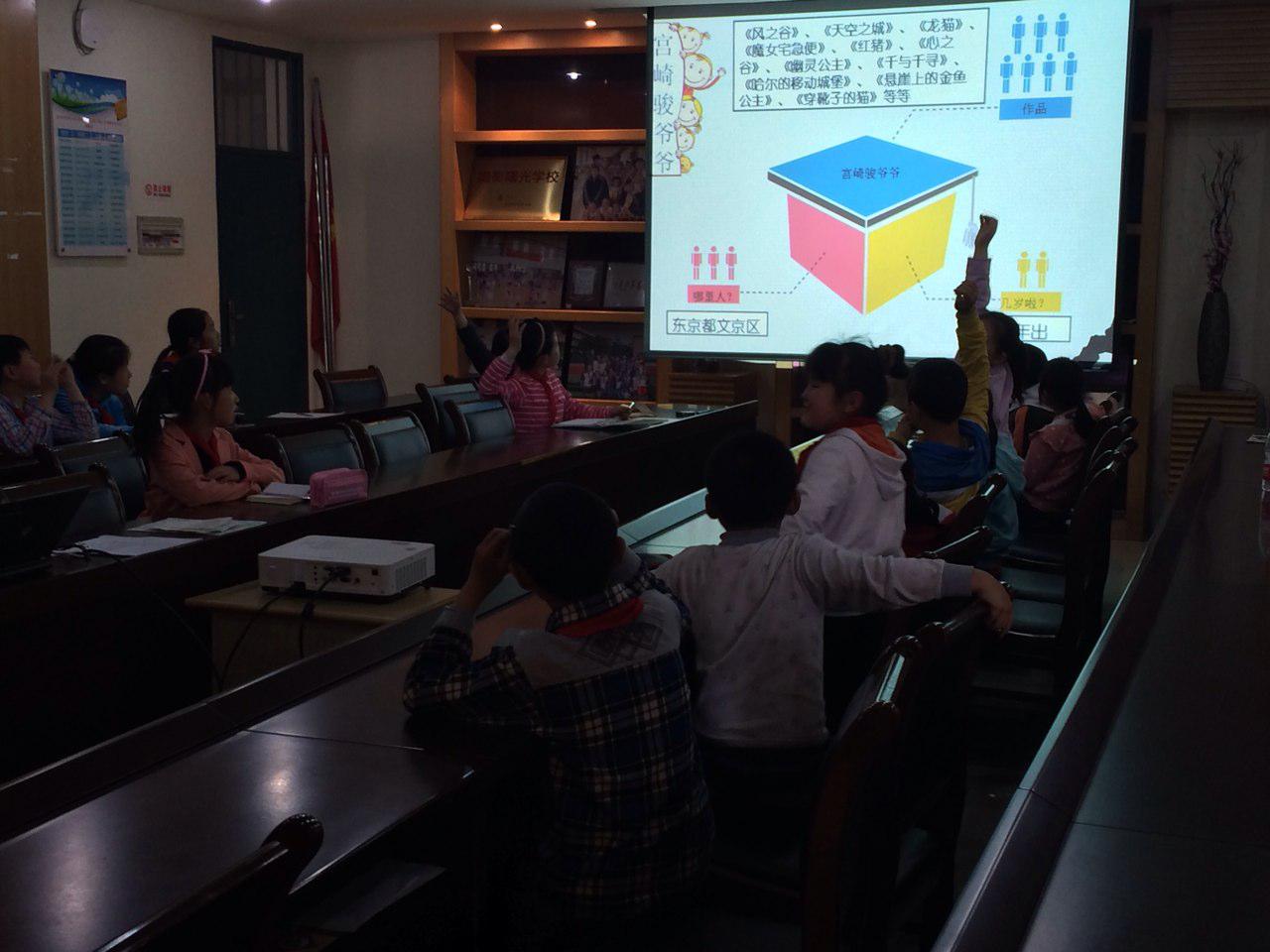 考虑到参加“小蒲公英记者团”的孩子们来自学校的各个年级,学习的水平和能力不同,低年级同学对新闻理论类的知识较难理解,因此支部成员们在讨论之后,最终将教学的主题设定为环保动画片,在增强孩子们学习兴趣的同时,也达到提高课堂效率的目的。例如,支部成员费彬烨的讲课内容是日本动漫大师宫崎骏的故事,介绍他的自然风光三部曲(天空之城,幽灵公主和风之谷)。