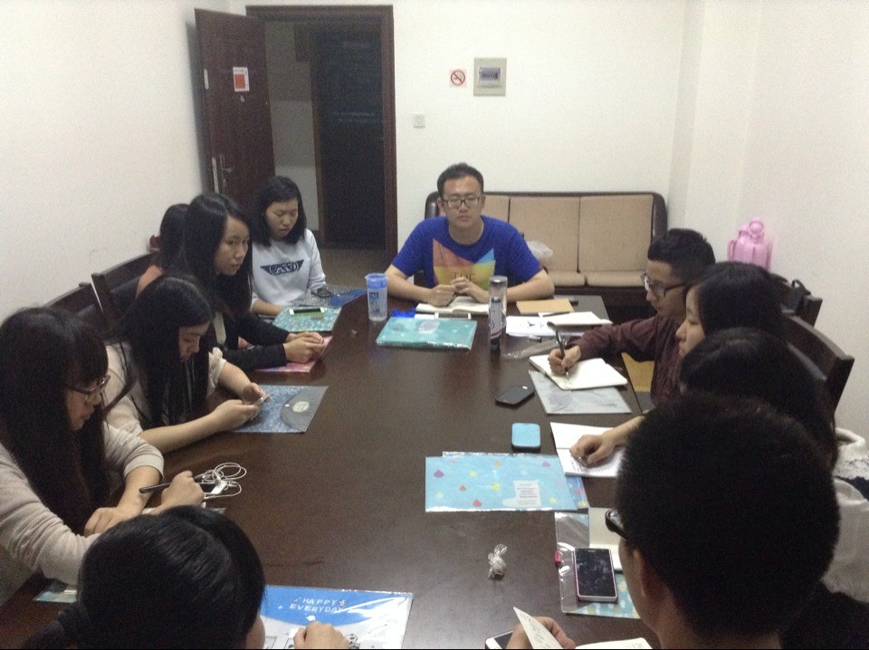 由于三项活动在时间上比较接近,研会承担了繁重的任务。在经过激烈的讨论后。王家邓在本次会议上提出了“Y”型组织模式。即研会除了文娱部全力落实联谊活动外,其余四部门全部投入到校友大会和新媒体论坛中。其中主管校友大会的学术部和主管新媒体论坛的宣传部各组成3人的监督小组,分别监督校友大会和新媒体论坛的进程。经商议,会议决定将上述四部门的人员分为嘉宾接洽、宣传策划、现场后勤三个工作小组,以项目负责制的形式分配任务。