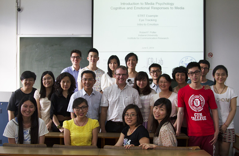 本次工作坊邀请到的嘉宾是印第安那大学传播研究所所长Robert F. Potter在授课过程中,他对认知心理科学在传播进程和效果测量中的理论、方法、技巧以及该领域最前沿成果做了详细介绍;同时,在传播学实证研究中引入认知神经科学的术语概念、理论体系和测量技术(包括眼动仪、脑电等),并帮助学员掌握这一实时测量方法,作为对于传统媒介心理效果测量的有机补充。