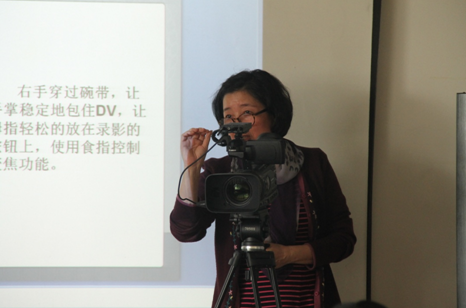 当谈到拍摄过程中如何控制机位时,周老师走到设备边,一边示范一边让同学们感受什么是不同的镜头画面,如何进行镜头的推拉摇移,如何掌握不同的景深等等。“越轴的画面不能剪接在一起,中性镜头的使用可以破除这种情况”当周老师把摄像机的镜头对准台下,同学们在大屏幕中看到了自己的身影,这样现场的演示和切身的画面感受,让许多同学对枯燥的理论立刻有了生动的认识。