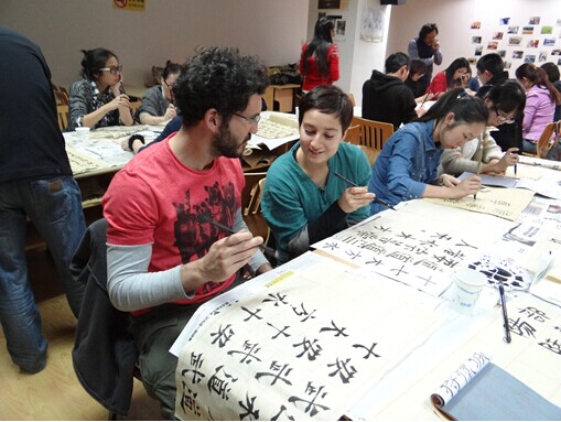 2014年11月3日晚上19:00,西溪校区教学主楼426活动室,传媒学院“汉语之声”举办的跨文化交际训练营第二期“中国书画小课堂”准时开始。本期活动特邀浙江大学美学与批评理论研究所所长沈语冰教授,为同学们讲解中国书画知识,并现场教授中国书法。汉硕所的张丽萍老师和吴剑老师也出席了本次活动。