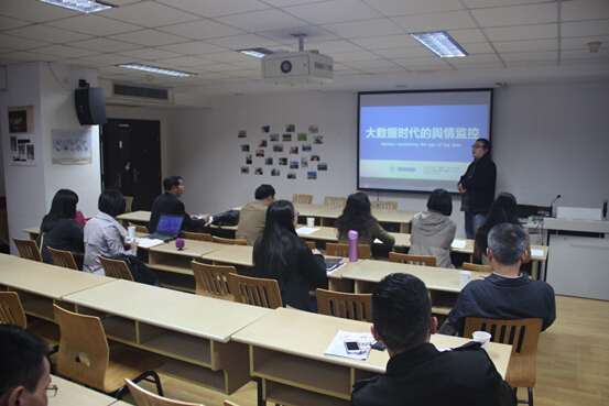 2014年11月7日,舆情研究学术技术交流研讨会在浙江大学西溪校区主楼426举行。本次研讨会由浙江大学传媒实验教学示范中心主办,浙江大学城市学院传媒分院院长张梦新教授及教师代表、尼尔森网联数据服务有限公司舆情相关专家代表、杭州探路者网络科技有限公司副总及技术代表参加了会议。研讨会主要就目前研究热点——舆情问题进行了学界与业界的交流研讨。
