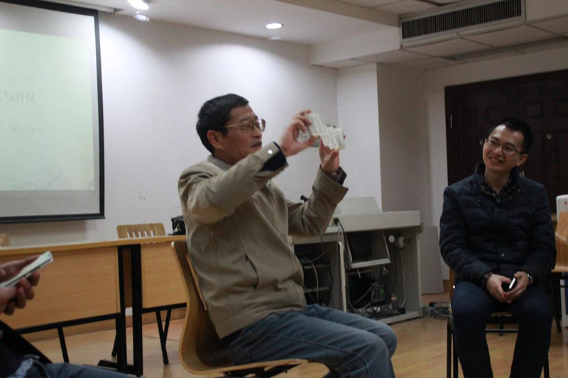 朱则杰教授的讲座,从诗词的平仄和对仗出发,将我们引入了一个格律的世界,带领我们欣赏了蕴含在中国古典诗词那丰富的意境之中的形式之美。之后,朱教授又从专业的角度为我们剖析了平仄和对仗在诗词创作中的实际运用之法,还向我们展示了前人用来辅助格律创作的“法宝”——律书,并且信手拈来一句“老和山上红旗飘”为例,为我们讲解了一句格律诗创作中的一字之妙。并且还用西湖十景和新十景的取名等等来说明平仄对仗的工整,让大家有恍然大悟之感。原来韵律就在生活点滴中。