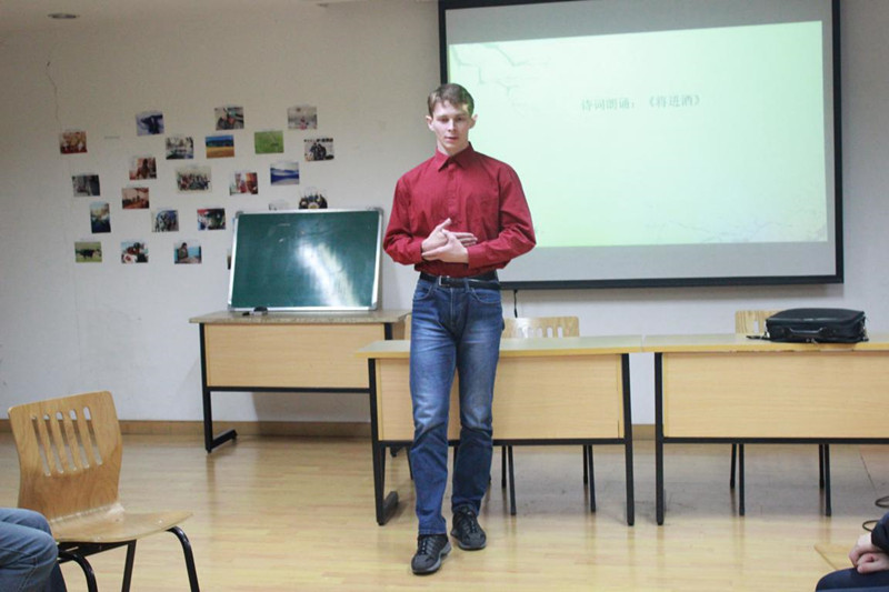 在活动的过程中,12级汉硕的王博同学带来了诗词朗诵——《将进酒》,在他的字字铿锵中,我们仿佛看到了李太白正在这样的月夜中举杯痛饮,留下“ 天生我材必有用,千金散尽还复来”的豪迈诗篇。而朱教授在表演的环节更是露了一手,缓缓唱起了《早发白帝城》的诗句,在悠扬的歌声中,我们仿佛也坐上了那而去的轻舟。