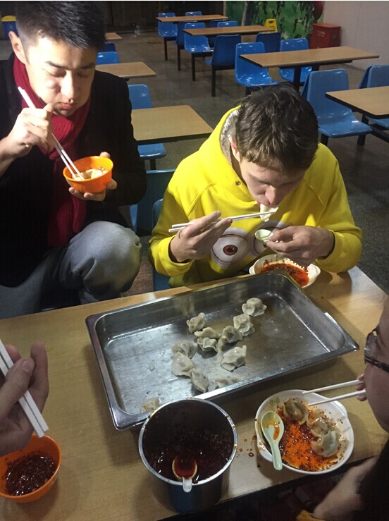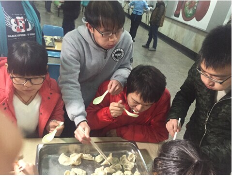 大家都在认真地包饺子,来自土耳其的黄石怀(图左)是穆斯林,不吃猪肉。为了照顾穆斯林同学,张丽萍老师还贴心地带来了素饺子馅。