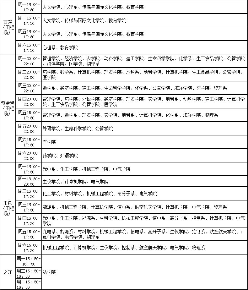 附:阳光锻炼全校各学院时间安排表