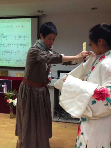 4月24日,浙江大学传媒与国际文化学院“汉语之声”社团主办的“跨文化交际训练营”第二季第二期活动在西溪校区教学主楼426如期举行。此次活动的主题是“水袖翻飞风韵足”昆曲体验,我们邀请到了来自浙江昆剧院的国家一级演员—杨崑老师来与同学们进行互动交流,同时参与活动的还有国际文化系的张丽萍老师,以及来自不同专业的留学生和中国学生。