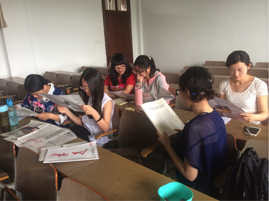 随后同学们认真地研读和学习近期《人民日报》及《求是》杂志,并相互交流学习心得感受。关于习近平同志在5月12日就人民日报海外版创刊30周年作出的重要批示,胡晓昕同学表示,人民日报海外版自1985年创刊以来,在搭建传播平台,展示中国变化,传播中国立场,弘扬中华文化方面为海外华人华侨、留学生以及汉语学习者塑造了积极正面的中国形象,这对于我们学习的汉语国际教育专业有着很大的启示意义。对于《求是》杂志的刊名,李玥同学说,“求是”二字,也是浙大校训“求是创新”给我们提出的要求。在做人做事上,我们都要秉着“求是”的精神,认真负责地对待身边每一个人,做好每一件小事。
