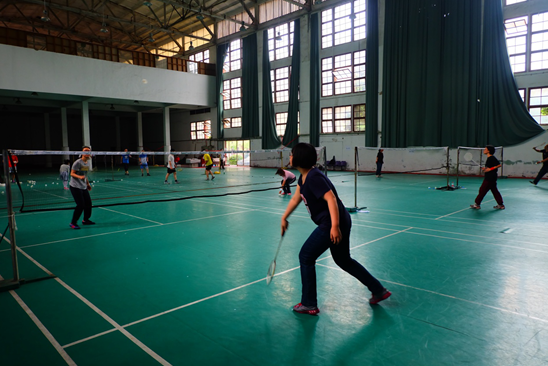 当天下午,美学所的同学们按照事先约定好的时间,准时来到羽毛球馆,虽然美学所人数不多,但丝毫没有影响到同学们对此次羽毛球比赛的热情。同学们抽签分成两队,每队各一名男同学、一名女同学,先是女子单打,再是男子单打,最后是男女混合打。