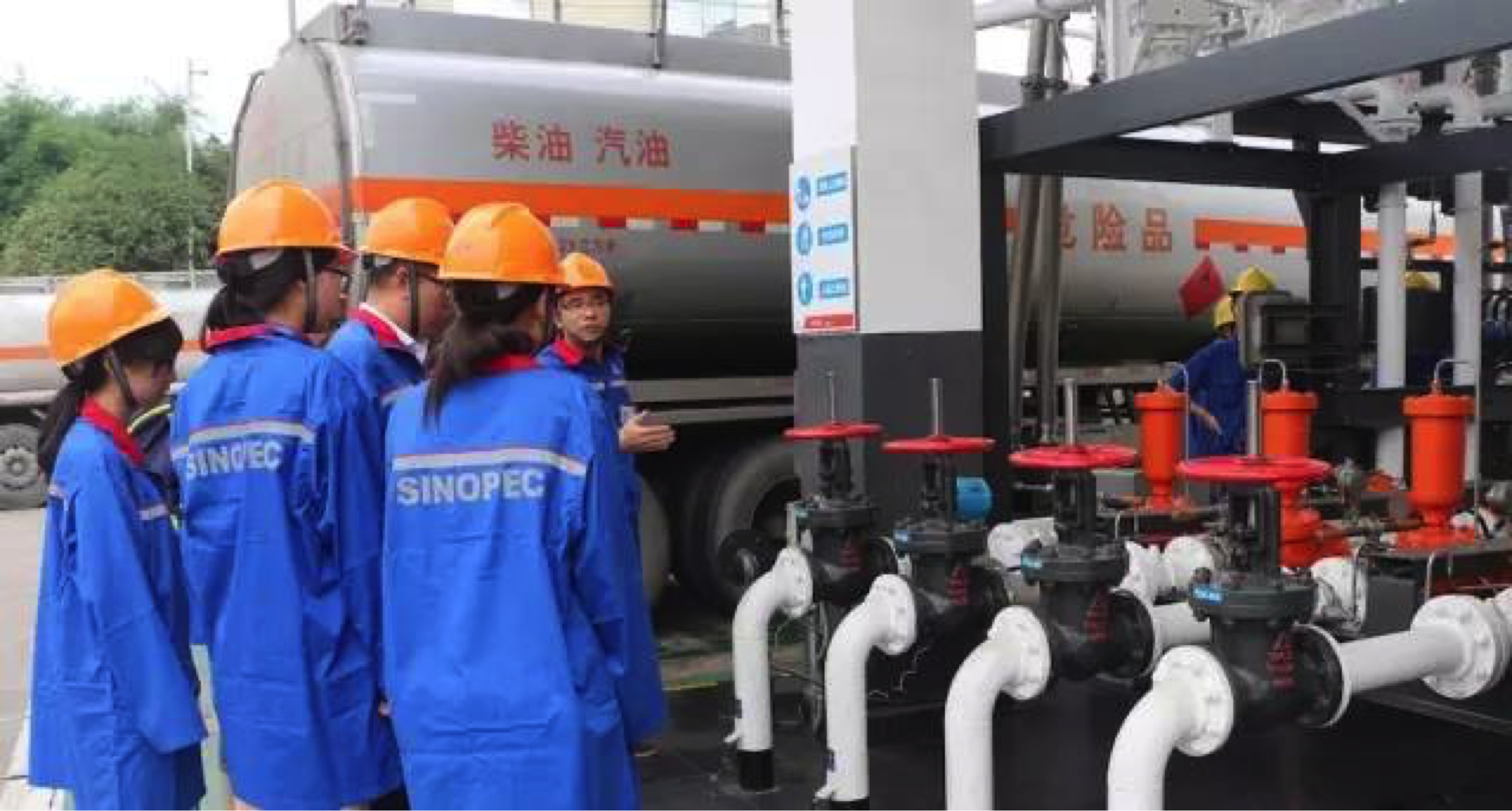 图4:在油库区内,所有人员都需要穿着厚重的工作服和安全帽进行作业,康桥油库的加油车每天几乎无间隔运转,共有7个加油口,每天输油33000吨,发货量占到中石化杭州地区60%的市场份额。