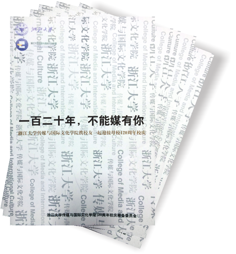 120周年校庆筹备工作正在紧锣密鼓的进行之中。近日,传媒与国际文化学院为筹备和迎接120周年校庆,专门编辑制作了以“一百二十年 不能媒有你”为主题的校庆宣传品,以更好地宣传120周年校庆,团结广大传媒校友共同迎接全球浙大人共同的节日。