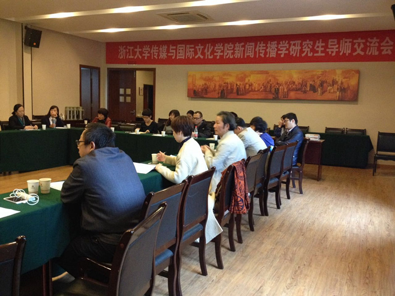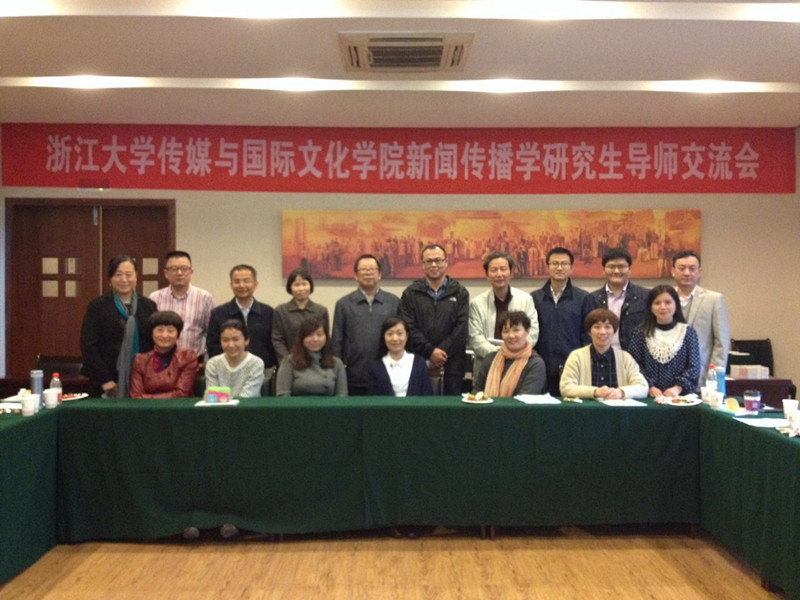 2015年10月30日下午,浙江大学传媒与国际文化学院新闻传播学研究生导师交流会在圆正西溪宾馆求是厅举行。传媒与国际文化学院院长吴飞,党委书记吕国华,副院长李杰,副院长韦路,党委副书记王玲玲以及新闻传播学学科的老师们参加了会议。