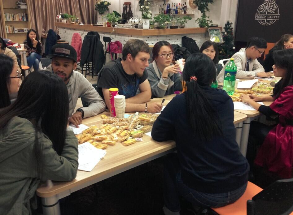 2015年11月11日19点,在西溪校区教学主楼四楼的鸽子屋咖啡厅,由浙大传媒与国际文化学院“汉语之声”组织承办的第四期汉语角活动如期展开。由于主题是光棍节,因而本次汉语角比以往几期气氛更为轻松活泼,尽管因为第二天是玉泉校区很多留学生的期中考试,还是有铁粉同学来到汉语角,有两位法国朋友还是第一次慕名而来来。除了留学生外,还有几位热爱交流的中国朋友的参与,为留学生练习汉语提供了更多的机会。国际文化学系的张丽萍老师和学院的潘伊莎老师全程参与了此次汉语角活动。
