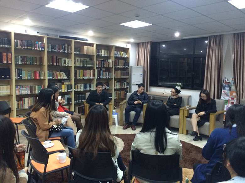 11月20日晚六点半,传媒学院就业指导月系列活动之“扫除毕业特烦恼”经验交流会在浙大西溪校区鸽子屋咖啡吧顺利举行。本次座谈会共邀请了五位我校往届优秀毕业生返校参与,包括中国银行客户经理吴姗、中石化浙江公司许雪斌、浙报集团数字采编中心政经新闻部副主任余列平、杭州萧山国际机场易行商务有限公司综合事务部副经理汪婷、微链App运营林瑾,涉及公务员、媒体、国企、新媒体多个领域。