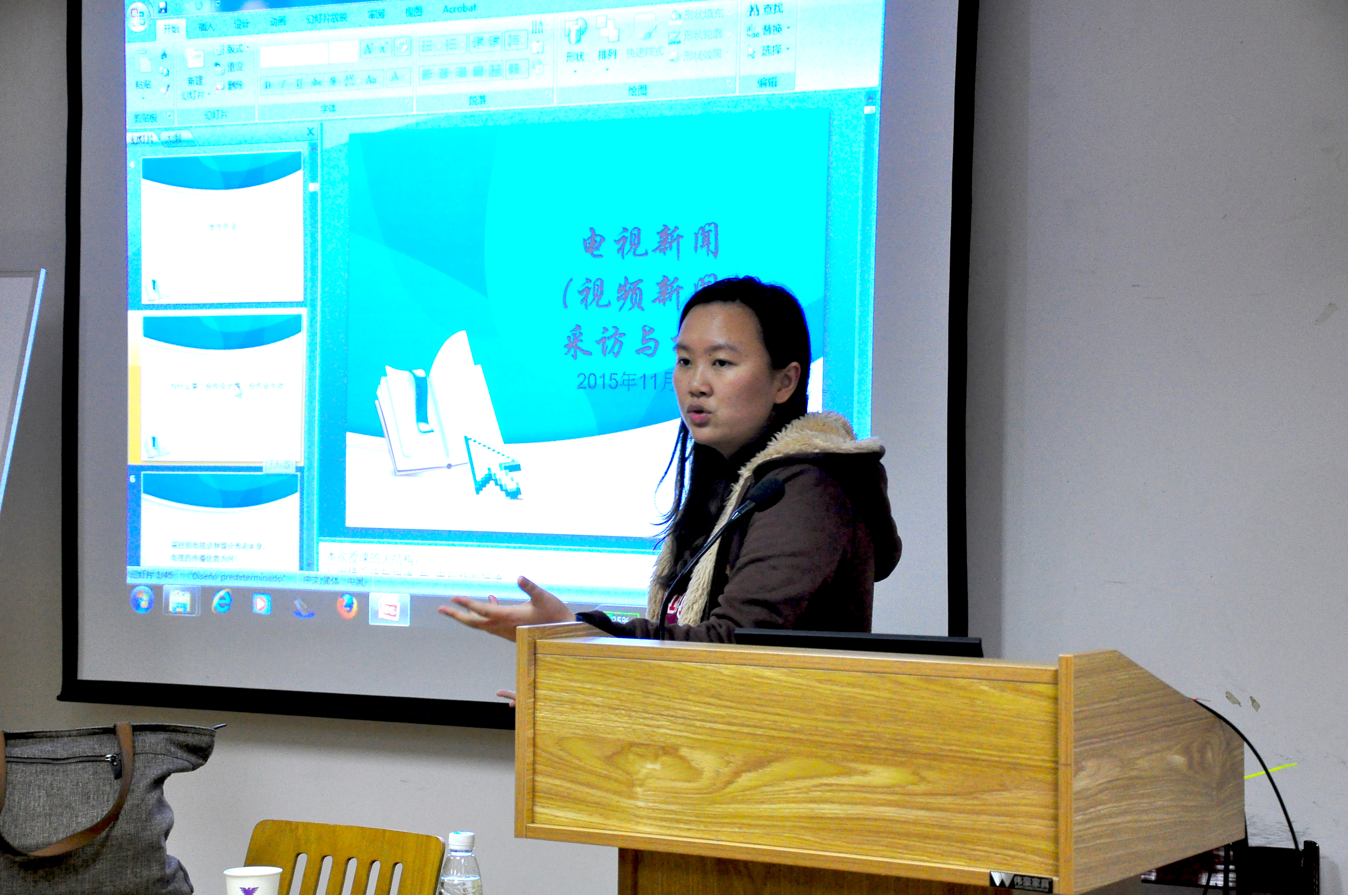 传媒与国际文化学院专业教师顾晓燕老师以“电视新闻的采访与报道“为主题,给同学们上了第四课。顾晓燕老师曾在浙江卫视工作很长一段时间,曾获中国新闻界最高奖项,具有丰富的新闻实战经验。她在讲课中通过幽默风趣的语言和具体视频的展示让同学们轻松地理解许多专业知识。她还特别提醒在拍摄方面需要注意的事项,相信对成员在专业性提高方面具有较大帮助。
