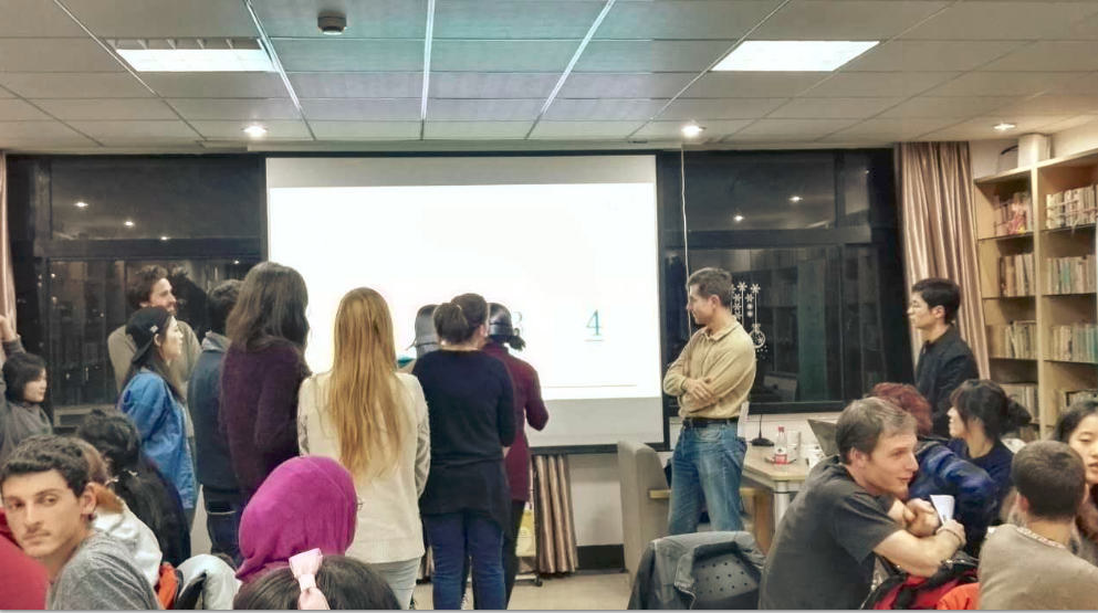 活动开始先由活动主持人彭胜杰向大家简单地介绍了一下中国的冬天,因为中国地域广阔,所以在南方和北方,呈现出不一样的冬日风光。中国南北的冬天,不仅室外的风光差异较大,由于暖气等设备,室内的景观也不大相同。而南北“暖气”问题,正是这段时间全国讨论得最激烈的问题,这样的话题,正好让中外学生引起对于现实生活的关注以及思考。简单了解了中国的冬天,主持人便让大家与自己的组员一起讨论了留学生自己国家的冬天。