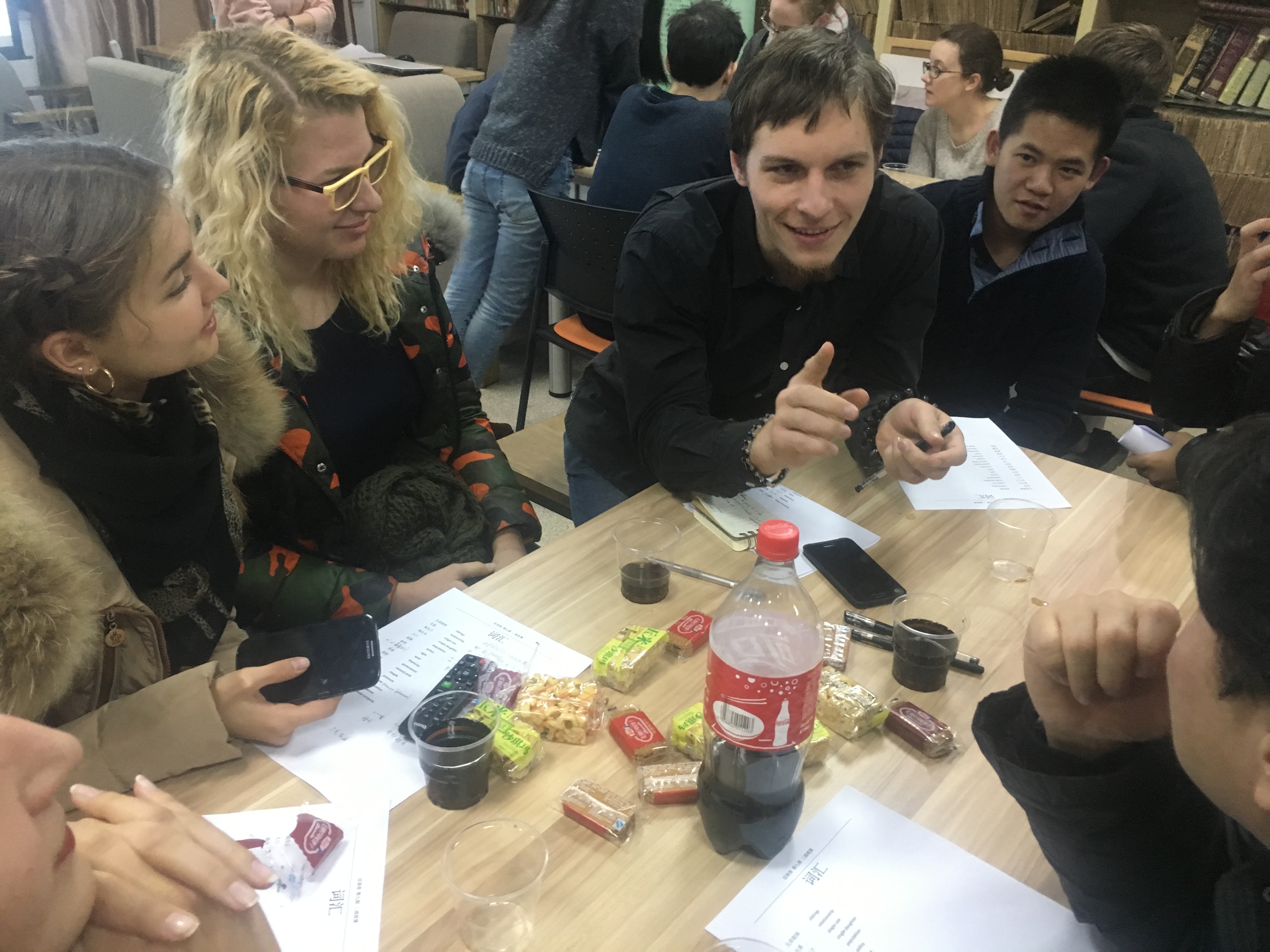 首先对于中国的独生子女政策,在场的所有外国朋友都表示不理解,但来自乌克兰的Richard也表示因为中国人多,这样的政策也是难免的。但是因为Richard来到中国时间不长,汉语水平有限,断断续续用中英夹杂的方式表达了自己的观点,却仍旧得到了大家的掌声。Richard这种不害怕说错,勇于发言表达观点的方式正是我们汉语角所要推崇的。