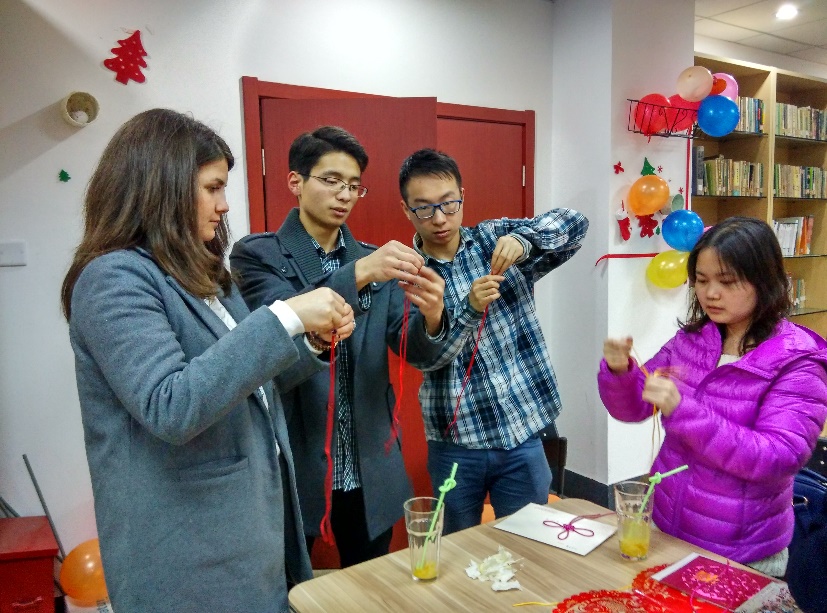 2016年1月5日星期二晚上,为了更深入的了解中国结文化,传媒与国际文化学院国文系的语伴们在西溪校区主楼的鸽子屋特别举办了一次以“探秘中国结”为主题的年末聚会。