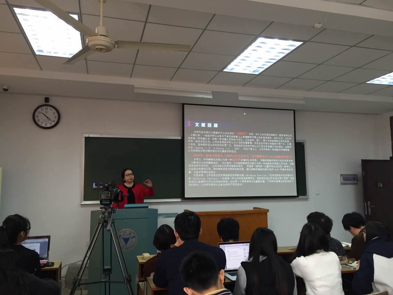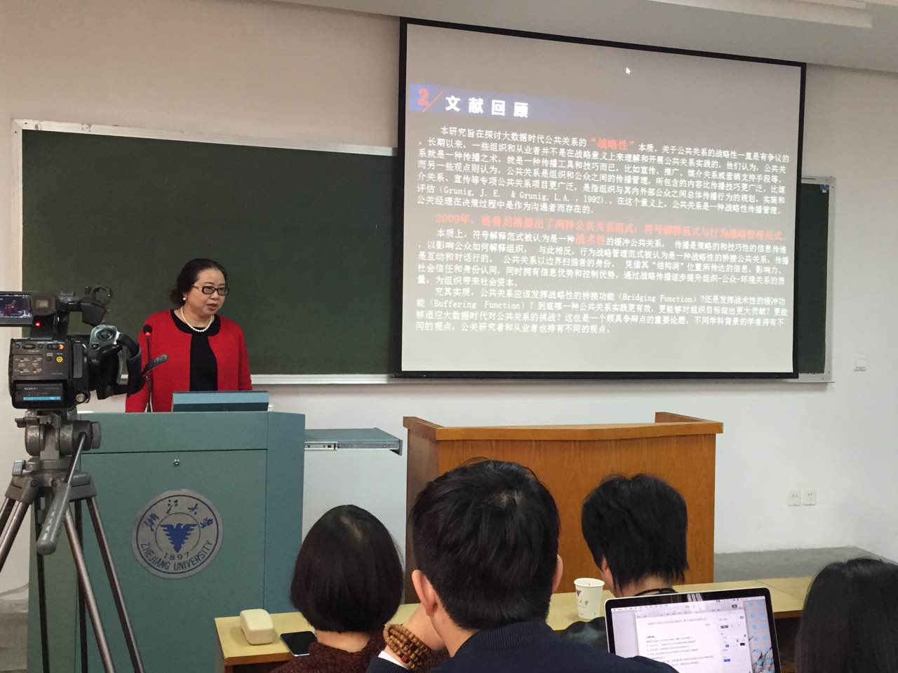 讲座中,陈教授先简单介绍了公关关系学的发展状况。之后分享了她对于公关关系领域研究的发现,从战略与战术两个层面探讨在大数据时代背景下,公关关系这门学科、这则方法、这个思维方式在学术专业上、职场实践中发展成怎样的面貌。此外,她发现,现在“公关”所处的境地就如同是钱钟书小说《围城》写得那般:“城外的人想进去,城里的人想出来”。最后,她以“科斯地板”理论与公关关系学的发展相联系,指出公关何去何从应当值得人们深思。这次讲座的信息量非常大,陈老师带来了公共关系研究许多崭新的理念和方法,特别在大数据方面提出了新的思路,对学生如何撰写论文提供了非常多的指导,最后提出了公共即战略的理念。