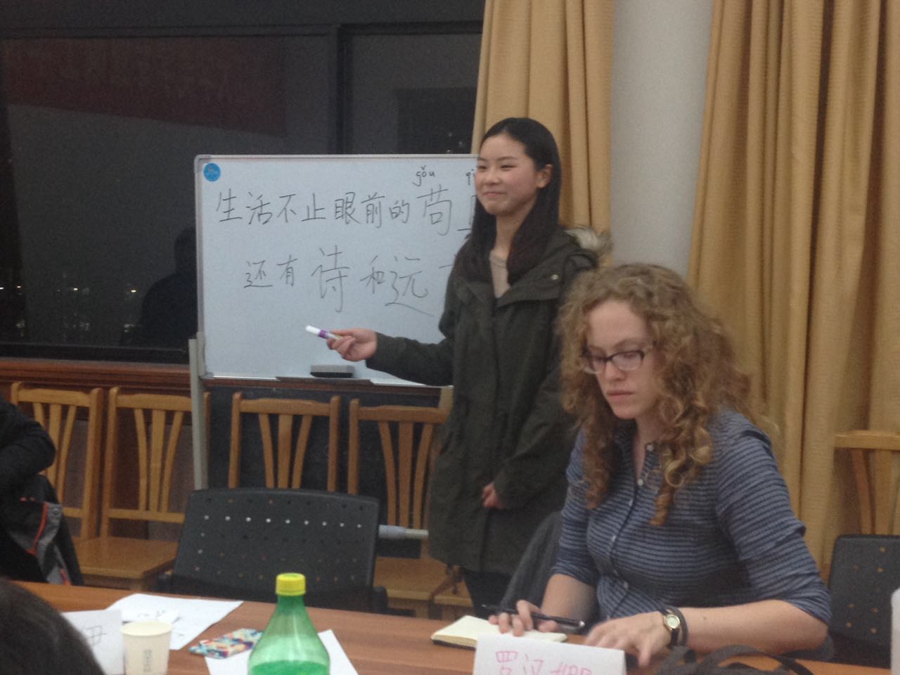 3月30日星期三晚上7点,高级汉语角准时与来自世界各国的青年相聚主楼511,共同讨论时下热门话题——生活不止眼前的苟且,还有诗和远方。本期的主持人是14级汉语国际教育学生邬佳伊和15级来自意大利的学生恩缇诺。