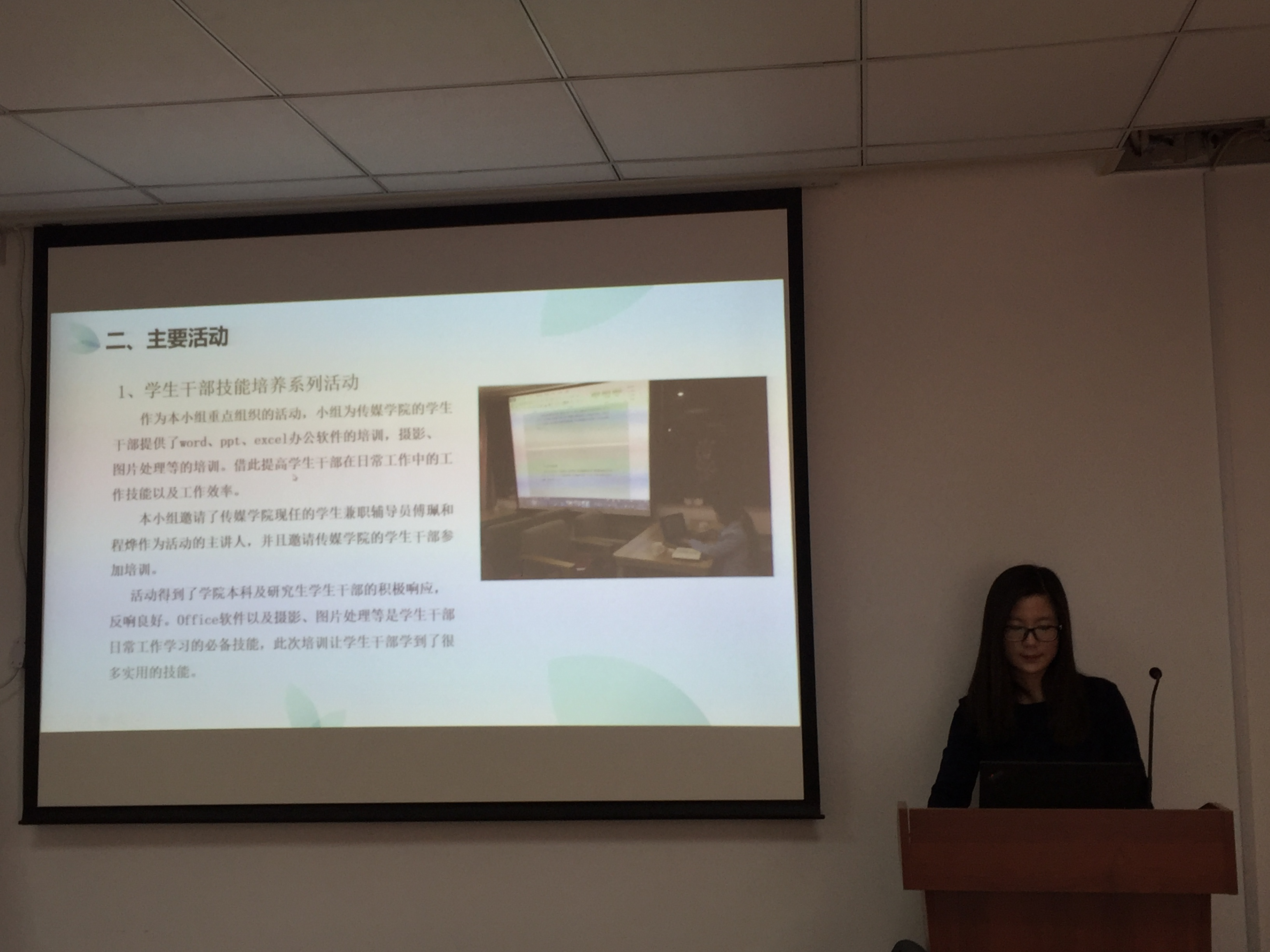 首先答辩的是项目是《学生干部素质拓展训练营》,汇报人通过ppt清晰地展现了项目小组在实施过程中的各个环节。汇报人表示,该项目中的多项活动对于学生干部素质能力培训有着重要的目的和意义。评委老师对照申报书,对学生干部心理培训活动没有完全开展感到惋惜,同时希望该活动可以继续开展下去。