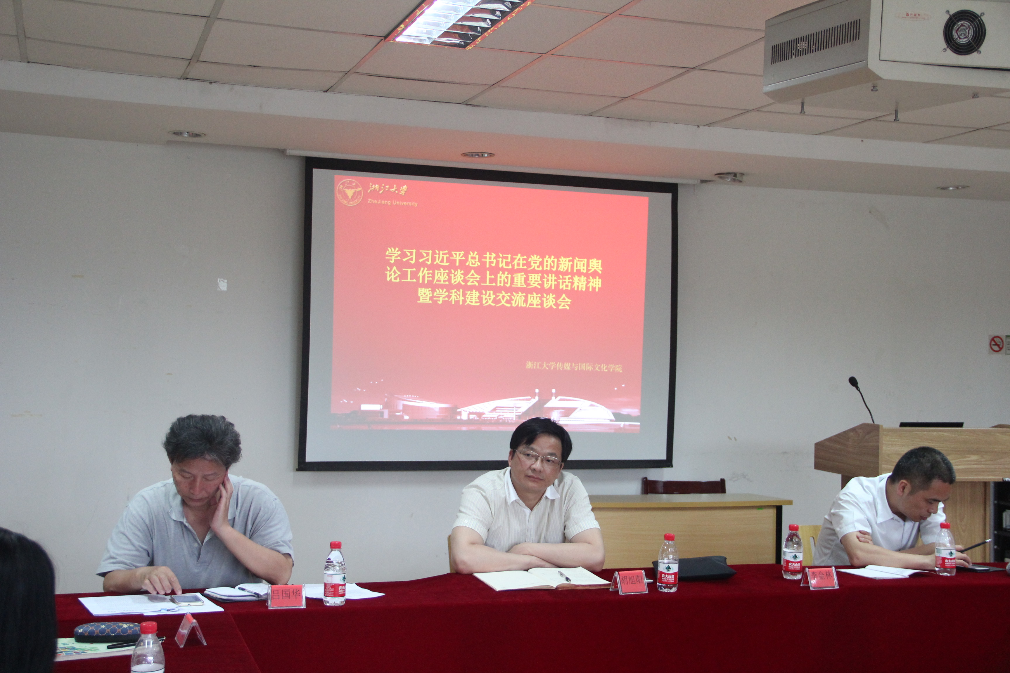 6月22日下午,校党委副书记胡旭阳在传媒与国际文化学院主持召开学习习近平总书记在党的新闻舆论工作座谈会上的重要讲话精神暨学科建设交流座谈会。校党委宣传部副部长李金林、传媒学院全体领导班子、教师代表参加。