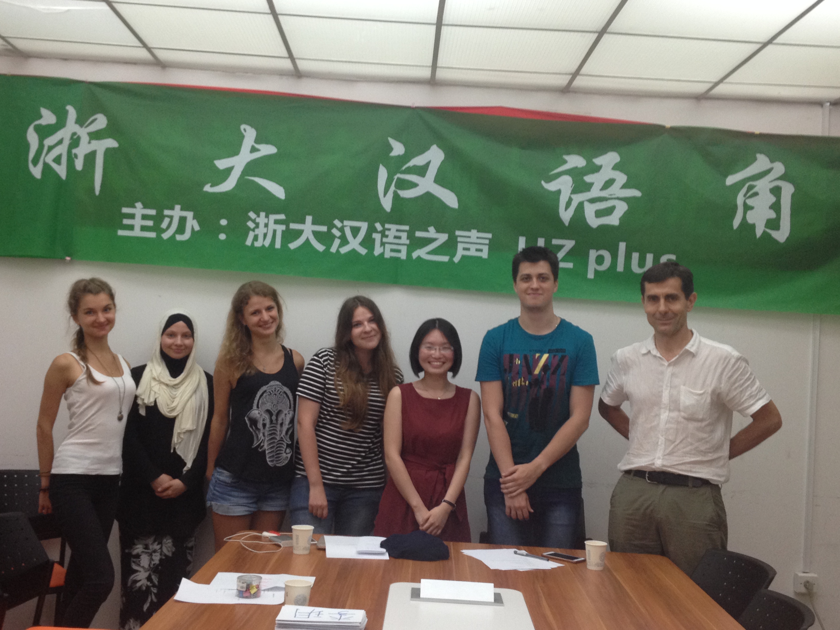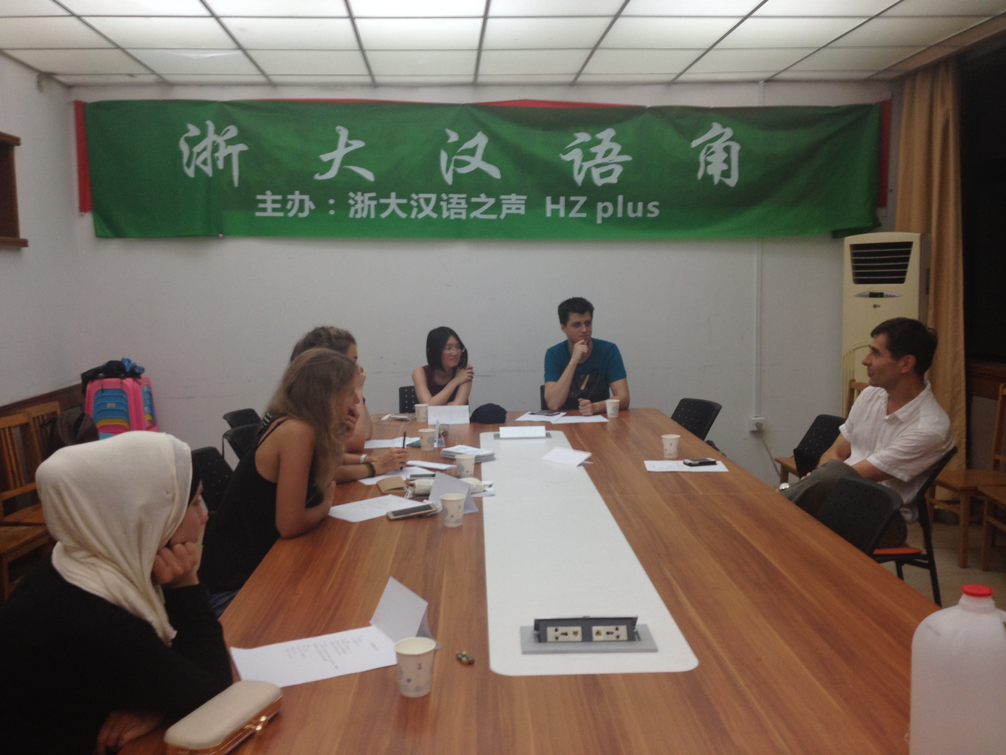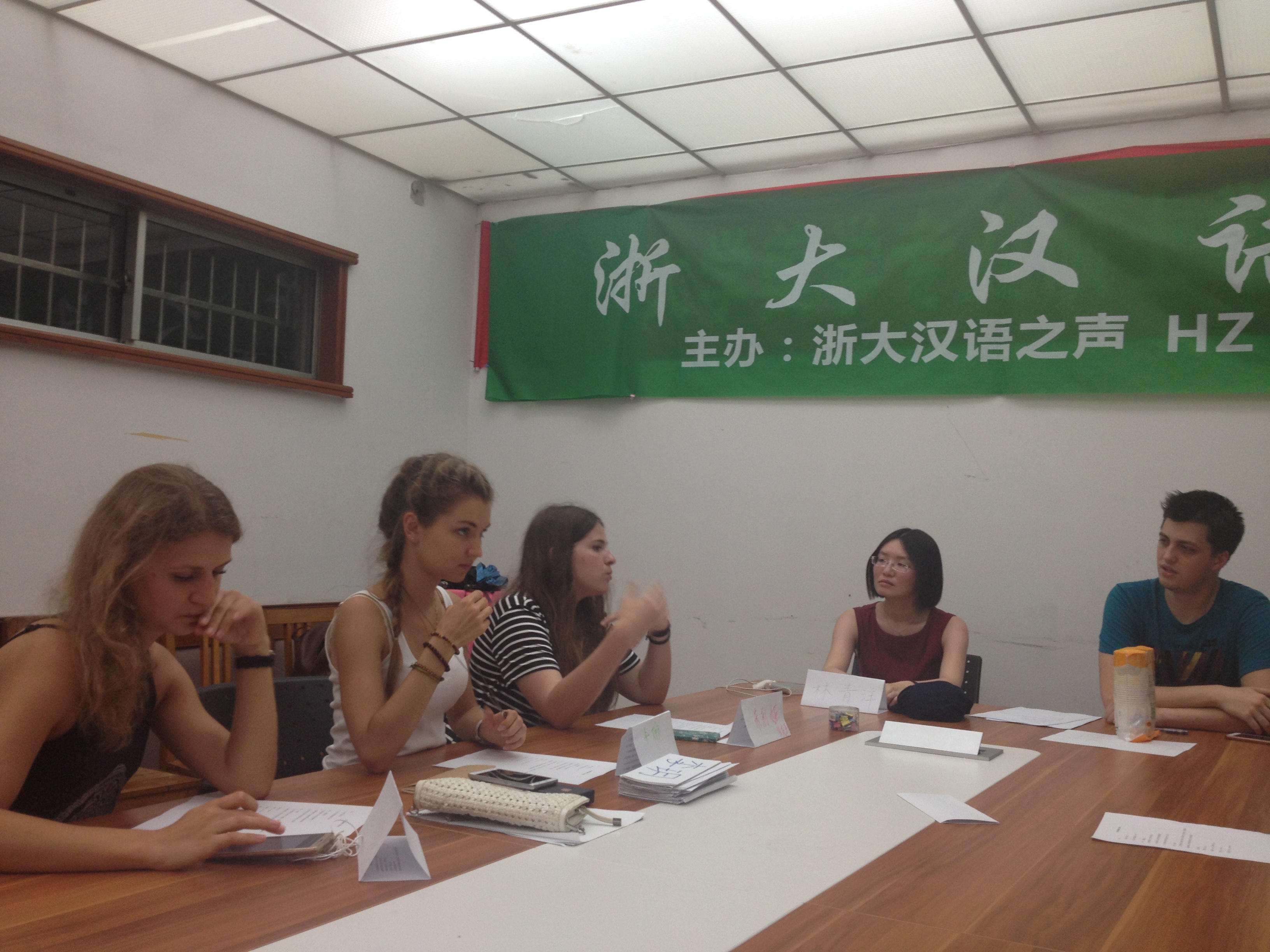 6月15日晚七点,浙大西溪校区主楼511迎来本学期最后一次高级版汉语角。本期汉语角由14级汉硕学生林青洋和聂耳泽主持,话题是上大学选专业,虽然天公不作美下了大暴雨,并且临近考试周,但还是有多位铁杆同学赶来参加汉语角。
