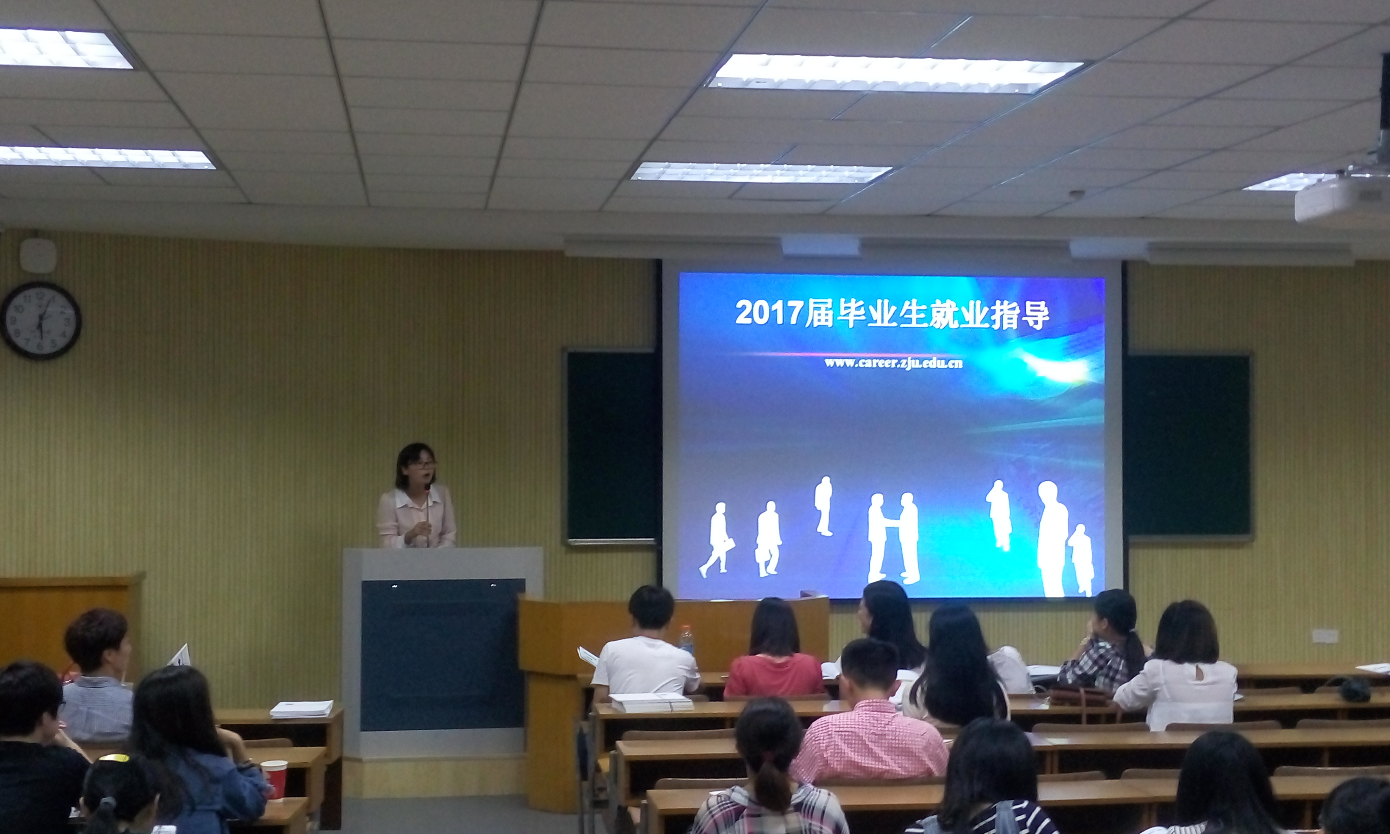 会议结束前,针对毕业生就业的流程操作方面,刘岩老师结合学校下发的浙江大学2017届就业创业指南,向大家介绍了毕业生就业须知。对于电子三方、浏览器设置、报到证等事项向同学们做了解释与指导。