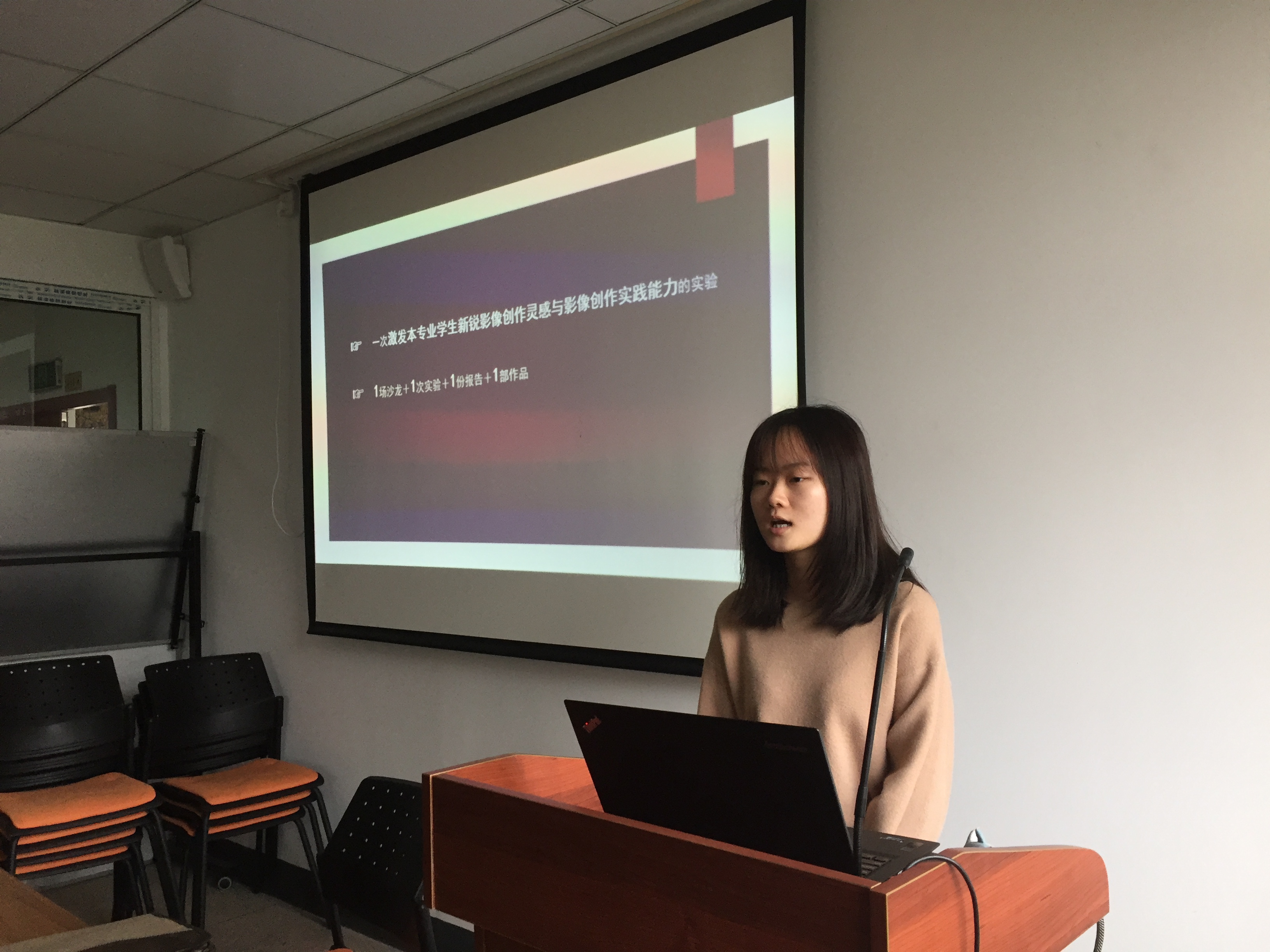 在答辩会中,6个答辩项目小组以PPT方式依次进行了开题展示。通过图片、文字、数据等相结合的方式,展示了其对于项目开展背景、项目具体设计、风险与可行性认知、预计成果等方面的认识。16级硕士罗磊所提出的“新影力——新锐影像表达探索与实践“项目,计划通过1场沙龙+1次实验+1份报告+1部作品的形式,激发本专业学生新锐影像创作灵感,提升同学们的影像创作实践能力。同为16级硕士的孙荧晨,则从精选题、深体验、广合作、微延伸四个角度对其选题——中华传统文化传承培训班进行了详尽阐述。14级本科沈舒怡小组的答辩轻松幽默,他们试图通过电影剧本创作营的训练,提升传媒学子的剧本创作和影片拍摄能力,打造未来的剧作家。此外,“给陌生人拍张照项目”、”“研究生活动策划与组织领导力提升项目”、“互联网环境下浙大茶产业发展现状描述与影像记录项目”的负责人分别就其项目进行了精彩的答辩展示。