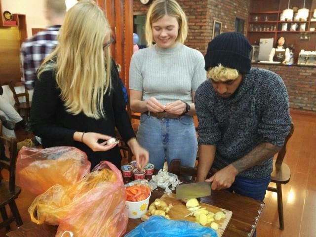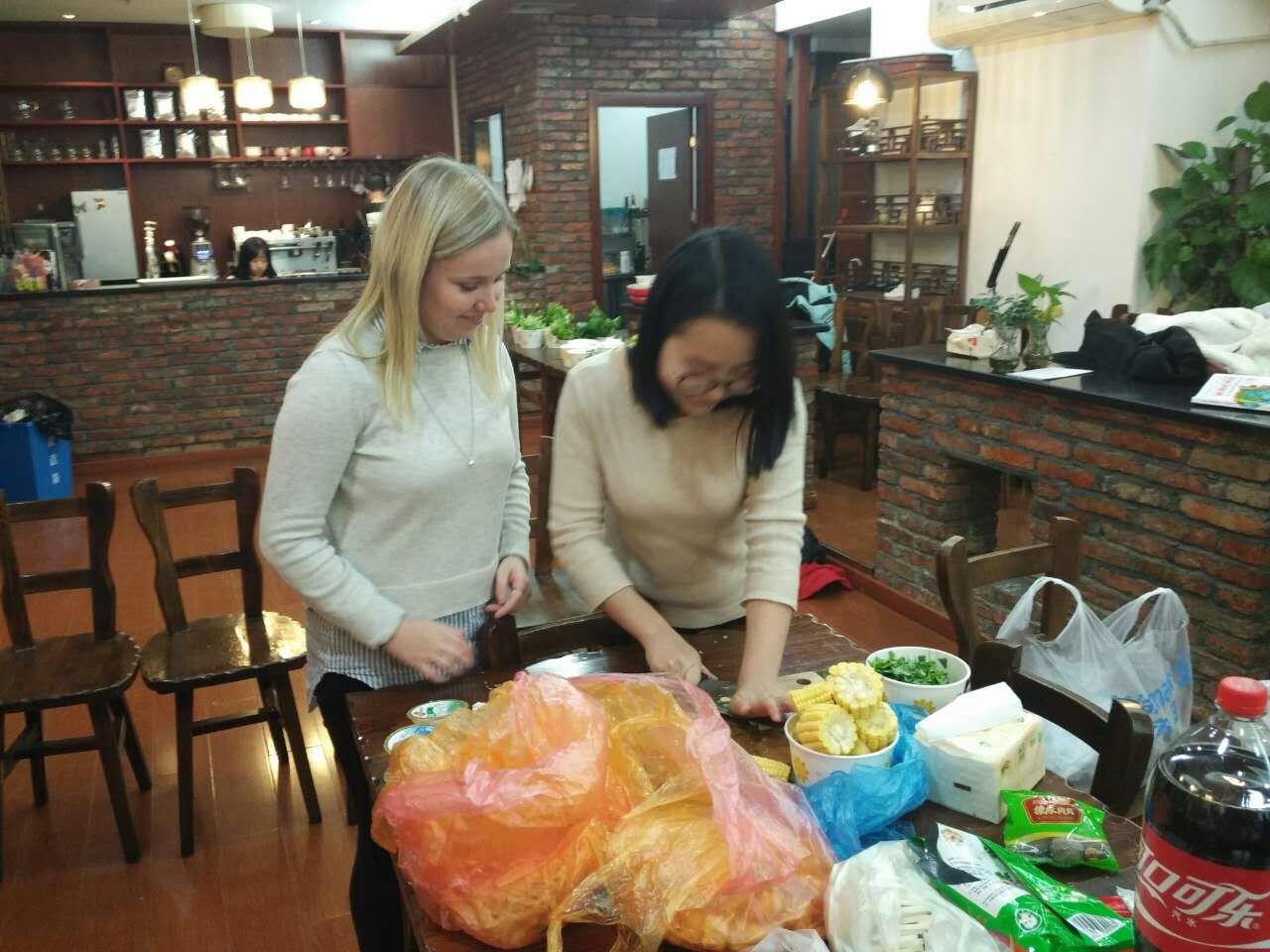 在活动开始之前,汉语国际教育的同学已经分工合作进行了买菜、布置等事项的准备。丹麦班同学如约而至,见到汉教的同学正在忙碌地准备火锅的各种材料,也主动提出帮忙并参与到活动中来。