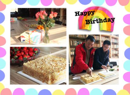 欢乐的生日快乐歌声中,每位“寿星”默默许下生日愿望,每位到场的老师都收到了娇艳的玫瑰花作为礼物,精致的生日蛋糕也分发到了每个人面前。只是再香甜的蛋糕、再美的花,也比不过每个人脸上那甜美灿烂的笑容。