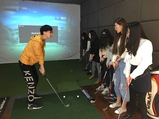 在杭图运动分馆的模拟高尔夫体验区,同学们还参与了高尔夫球体验活动。由杭州市高尔夫球运动协会的郭教练为同学们讲解高尔夫球的历史、比赛规则和技术动作,并让大家亲身体验持杆发球。高尔夫球被称为“绅士运动”,它所崇尚的“礼让”精神与传统射礼异曲同工。“中国君子”与“西方绅士”的碰撞让同学们体验到了别样的文化、也打开了全新的运动视角。