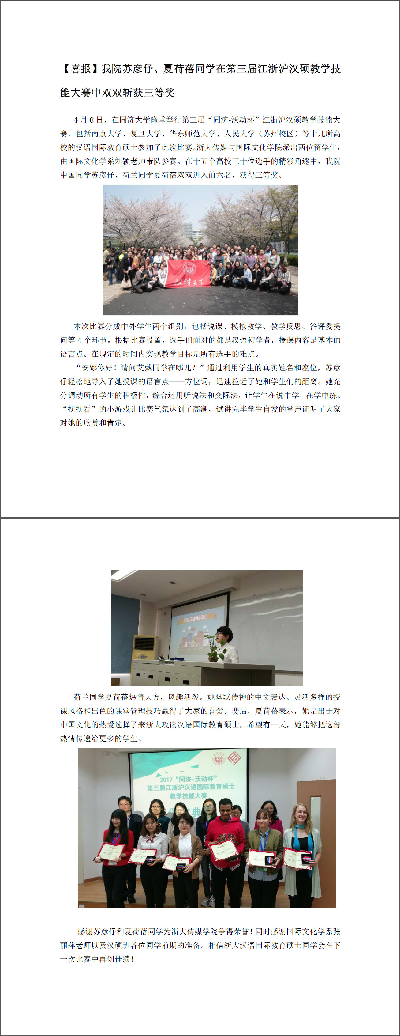 【喜报】我院苏彦伃、夏荷蓓同学在第三届江浙沪汉硕教学技 能大赛中双双斩获三等奖