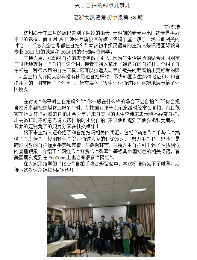 关于自拍的那点儿事儿 ——记浙大汉语角初中级第38期