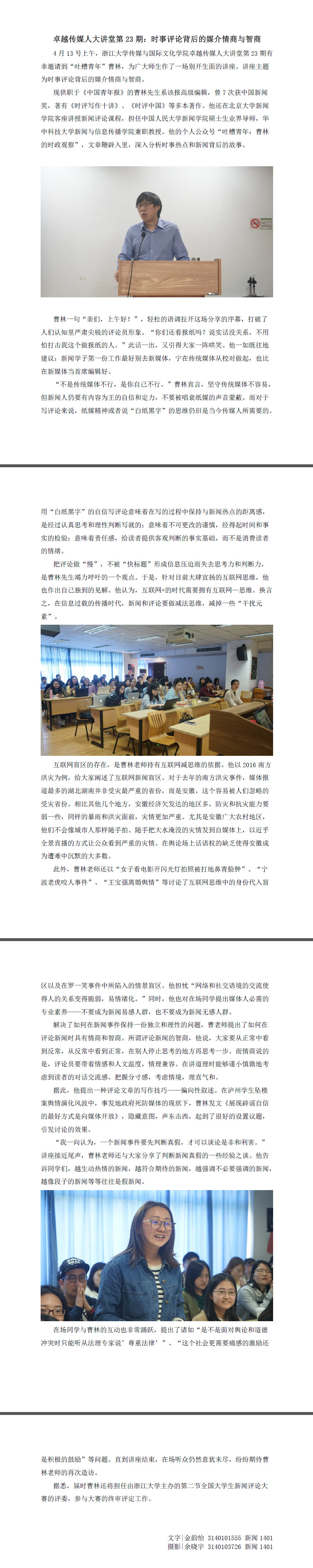 卓越传媒人大讲堂第23期:时事评论背后的媒介情商与智商