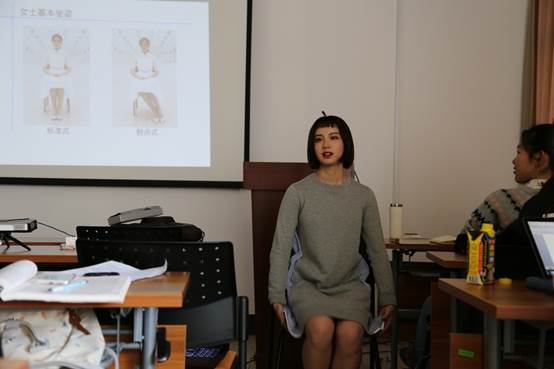 随后是礼仪队的同学给我们上了关于接待来宾时仪表仪态的一课。在老师的指点下,同学们纷纷尝试各种不同的站姿、坐姿,学到了在不同的场合中,不同的注视方式所代表的涵义。相信学会了这些内容,志愿者们能在学院4月份开展的“媒介融合变革时代的新闻传播教育改革”院长论坛以及校庆月的文艺晚会中发挥更大的作用。